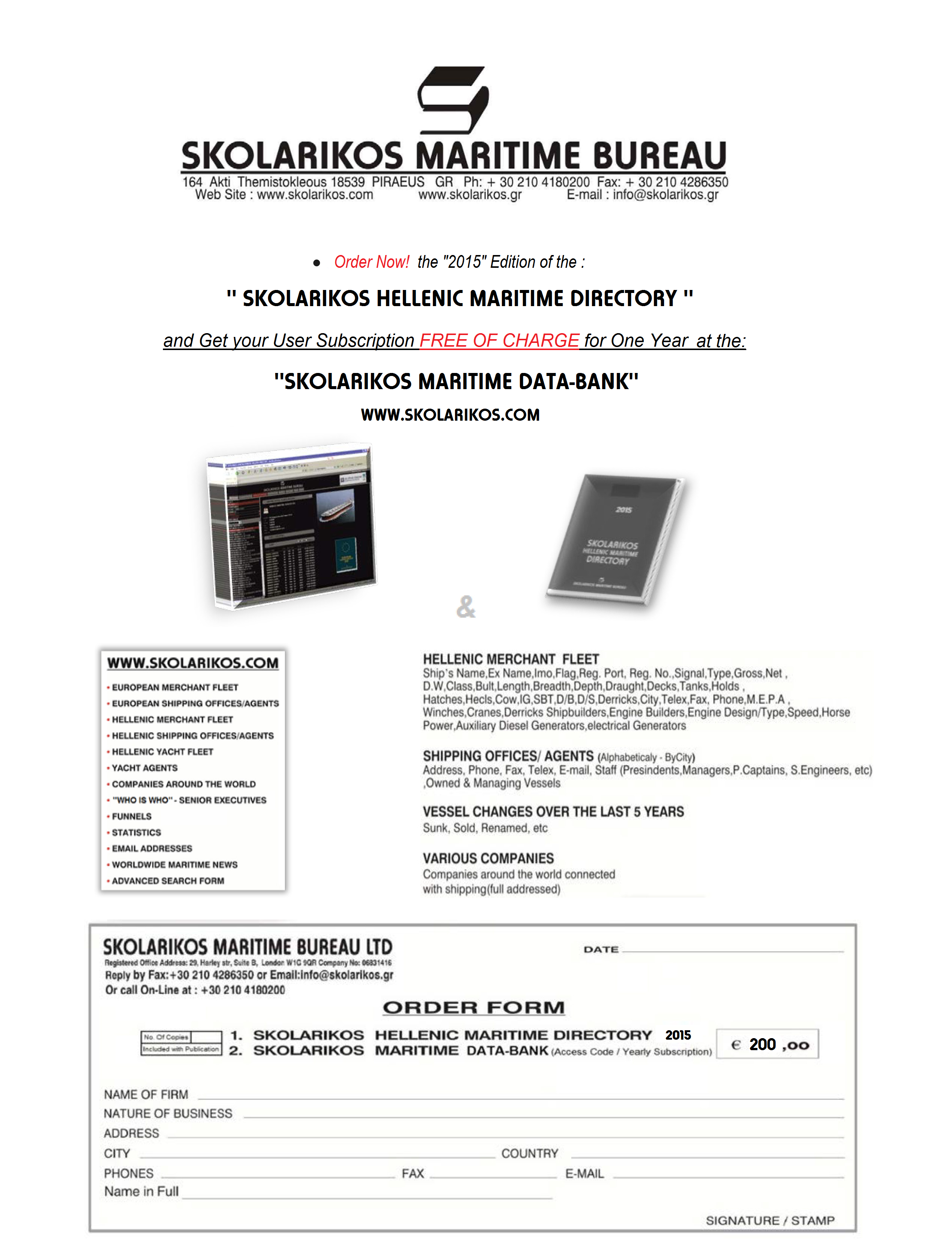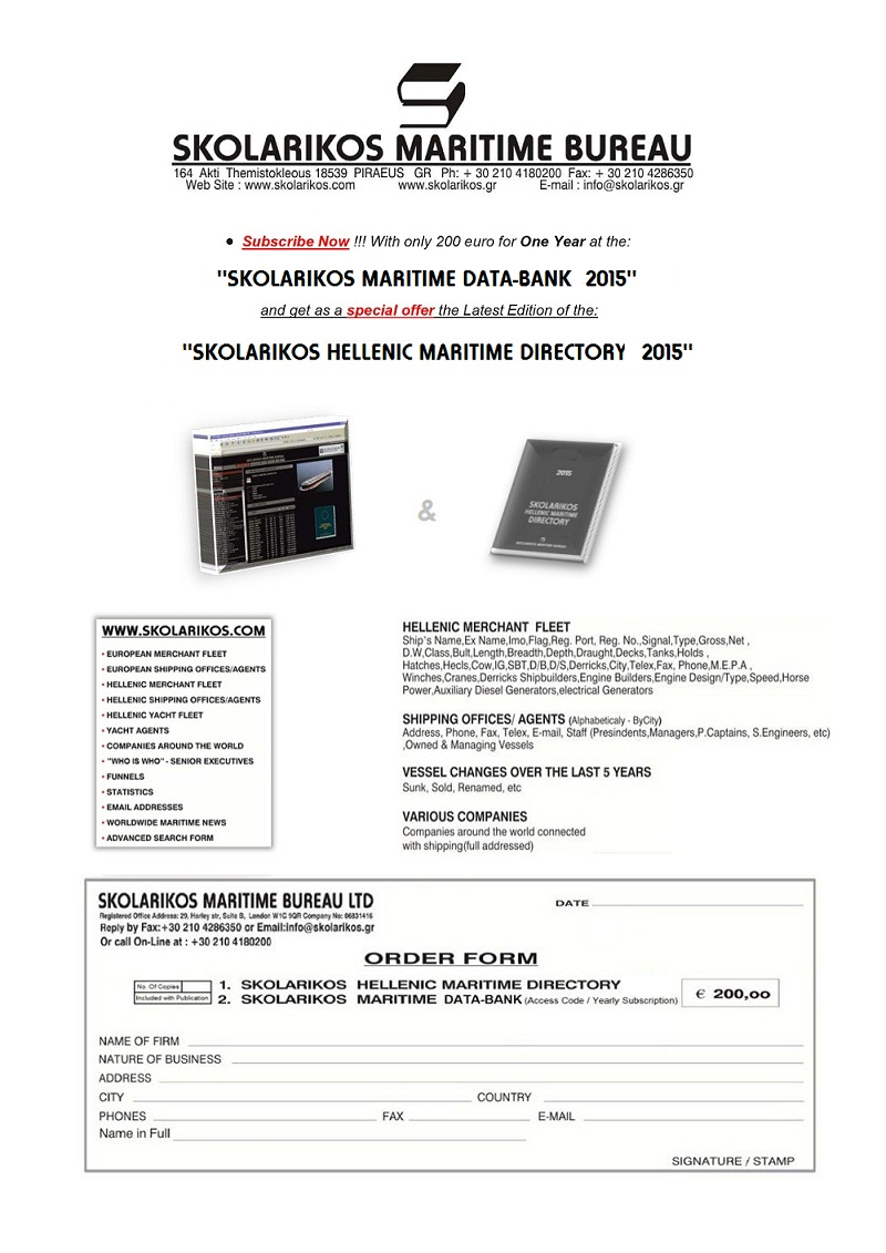 The New Edition of the SKOLARIKOS HELLENIC MARITIME DIRECTORY 2015 is now released.